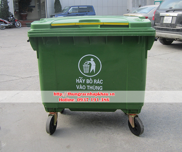 Sản phẩm thùng rác 660 lít có 4 bánh xe di chuyển được nhập khẩu & phân phối bởi Công Ty CP Thiết Bị Môi Trường Và Đô Thị Miền Bắc với cam kết hàng chính hãng, giá tốt nhất thị trường.